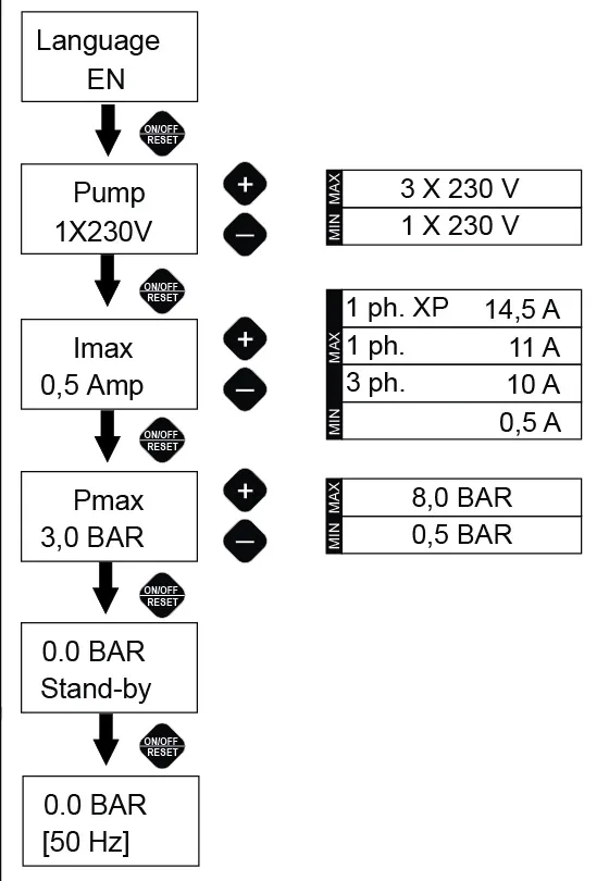 • Автоматический сброс в случае сухого хода.