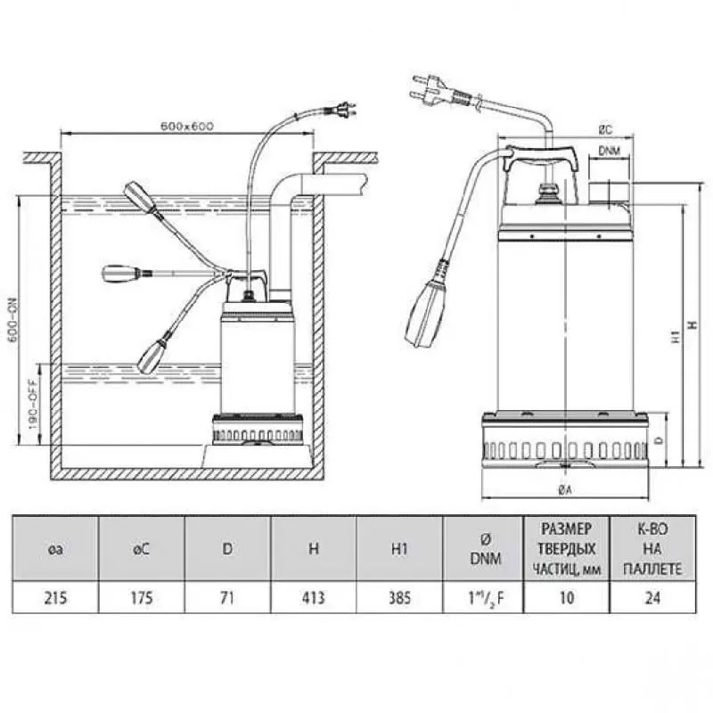 Схема дренажного насоса DAB DRENAG 1000 M-NA