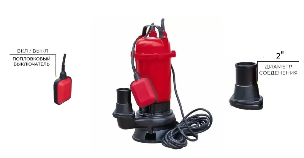 Насос дренажно-фекальный BRADO SP-1500. Предназначен для откачки грязной воды из затопленных помещений, подвалов, котлованов, а также для откачки канализационных стоков из накопительных колодцев, выгребных ям. Оснащен очень мощной чугунной крыльчаткой, которая способна легко измельчить даже крупные твёрдые включения. Имеет поплавок для автоматического отключения.