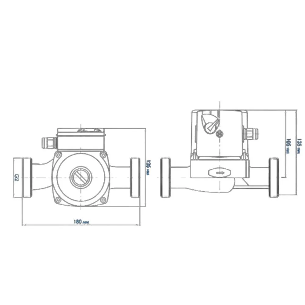 - Установочный размер между присоединительными фланцами: Указанный размер составляет 180 мм, что является важной информацией при установке и подключении оборудования