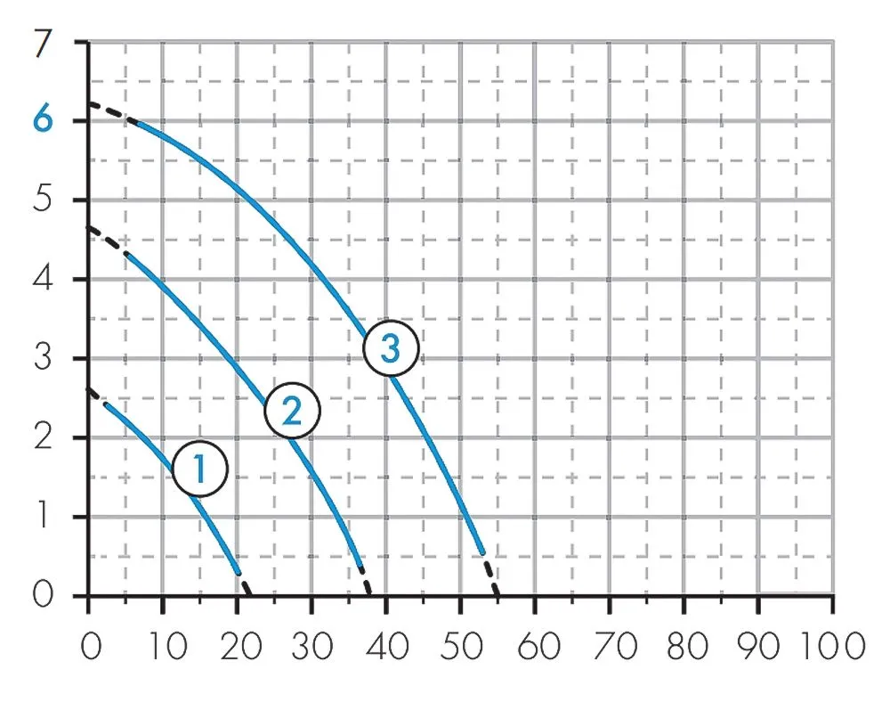 Насос имеет максимальную мощность варьирующуюся от 55 до 100 Вт в зависимости от режима работы, что обеспечивает гибкость в применении и позволяет выбрать оптимальный режим в зависимости от потребностей системы отопления. С тремя скоростями работы, он позволяет эффективно регулировать производительность и расход энергии в соответствии с текущими требованиями.