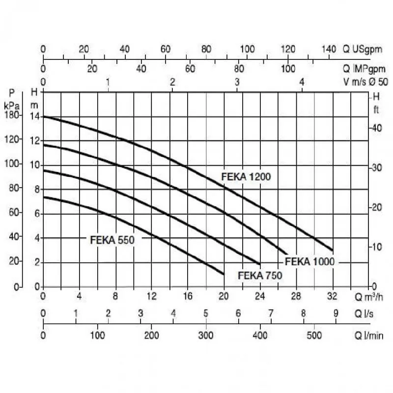 Графические характеристики фекального насоса DAB FEKA VS 1000 M-A