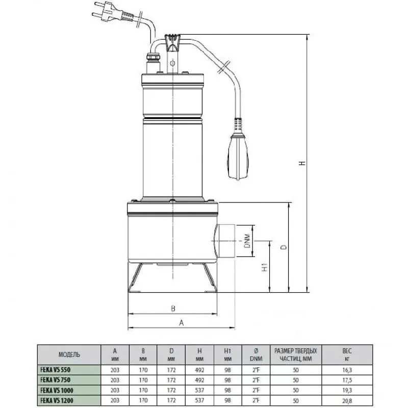 Схема фекального насоса DAB FEKA VS 1000 M-A