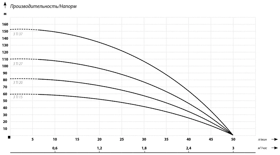 Графические характеристики насоса для скважины IBO 3Ti 37 кабель 20 метров