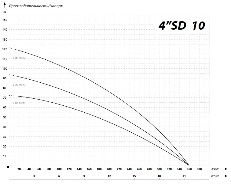Трехфазный глубинный погружной насос IBO 4SD 10/17 (380В) диаметром 98 мм с повышенной устойчивостью к песку. Насос IBO 4SD 10/17 (380В) доступен к покупке с двигателями IBO и итальянскими двигателями IBO ITALY. В насосе IBO 4SD 10/17 (380В) используется технология «плавающих лопастных колес», а также для основных рабочих элементов насоса применяются износостойкие материалы: латунный нагнетательный патрубок, корпус, вал и сетка фильтра выполнены из нержавеющей стали AISI 304 / а также лопастные колеса выполнены из высококачественной пластмассы, Благодаря этому насос IBO 4SD 10/17 (380В) имеет повышенную стойкость к песку. Насос комплектуется кабелем 1 м, по желанию его можно нарастить до нужного размера. Скважинный насос IBO 4SD 10/17 (380В) имеет отличные характеристики. Напор насоса в максимальной точке составляет 94 м, а производительность достигает максимального показателя в 19.38 м³/час. Мощность двигателя составляет 4000 Вт, то вполне неплохо для насоса с такими напорно-расходными характеристиками. Насосы серии SD марки ИБО были первыми насосами на рынке, названными «анти–песочными». Они по прежнему являются одними из немногих скважинных насосов на рынке, которые имеют конструкции с такой высокой устойчивостью к песку. Максимальное содержание песка в воде – до 5%. Насос IBO 4SD 10/17 (380В) можно применять как аналог насосов ЭЦВ.