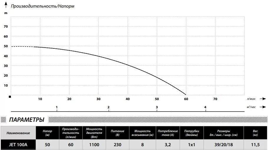 Водоснабжение домов, дачных домиков, участков и садов. В сочетании с мембранными резервуарами они используются для индивидуального и многоквартирного жилья, в промышленности и ирригации.Графические характеристики