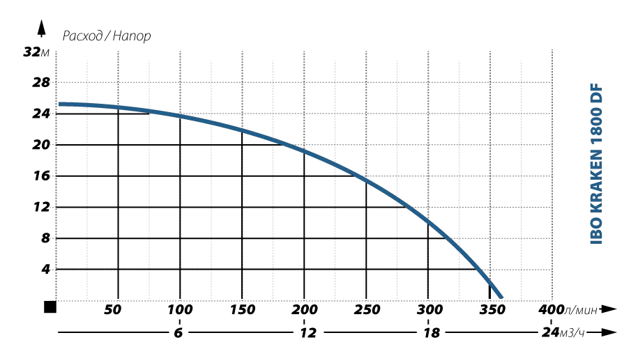 Графические характеристики фекального насоса IBO KRAKEN 1800 DF