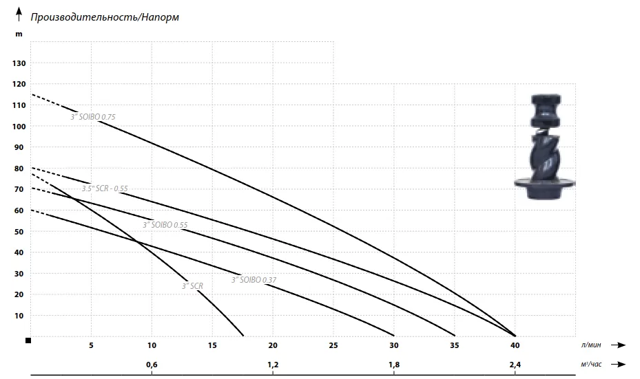 Этот насос отличается высокой производительностью, которая может достигать до 2.4 м³/час, а максимальный напор равен 115 метрам. Мощность насоса составляет 750 Вт, что обеспечивает его эффективную работу. Насос оборудован встроенным конденсатором, который позволяет установить его без необходимости проводить дополнительные работы. Тепловая защита, установленная в обмотке двигателя, гарантирует безопасность эксплуатации и защиту от перегрева.