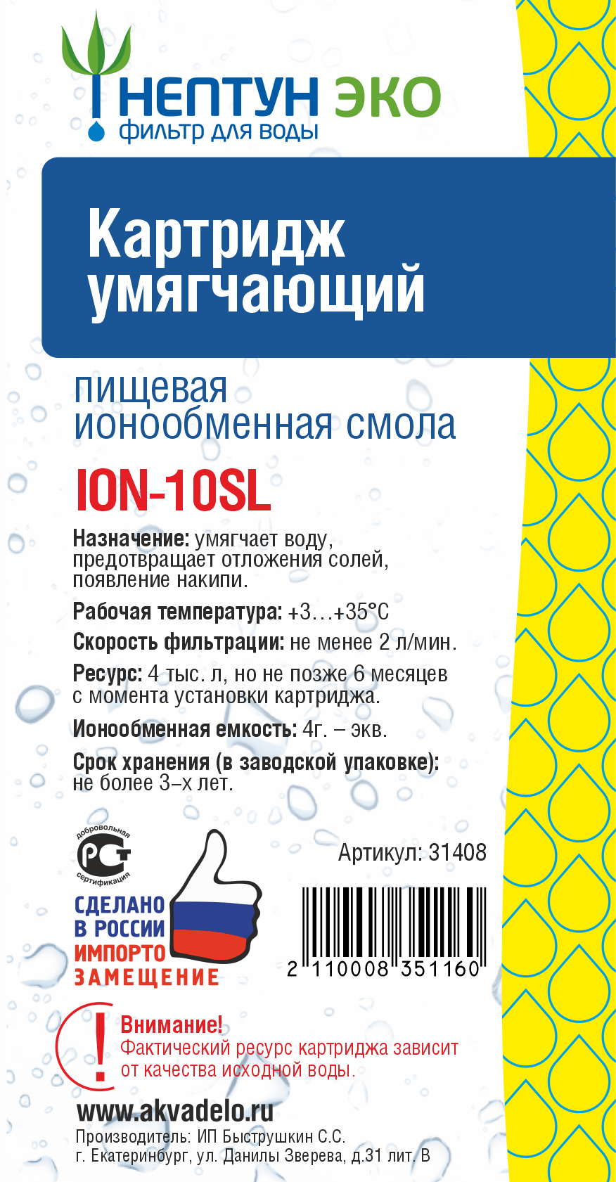 Картридж «Нептун ION-10SL» — это экономичное и эффективное решение для борьбы с жесткой водой в квартире или доме.