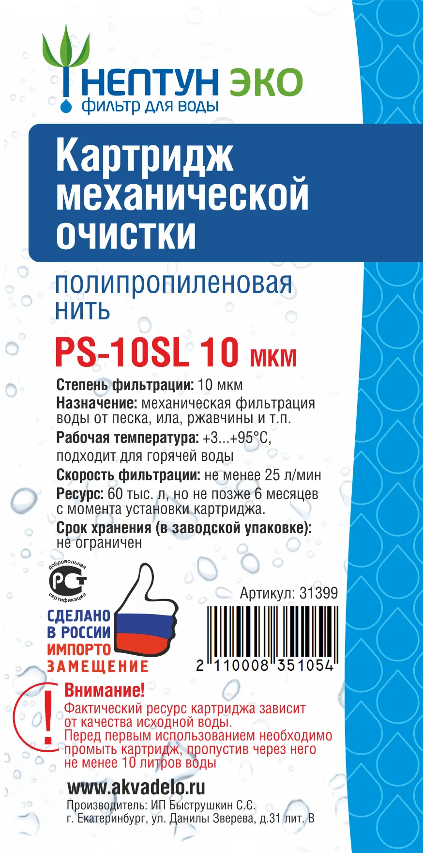 Это обзор стандартного 10-дюймового нитяного картриджа, предназначенного для удаления механических примесей из воды.