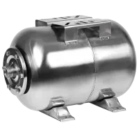 Горизонтальный мембранный бак MAXPUMP объемом 50 литров. Бак выполнен из нержавеющей стали. Мембрана бака выполнен из пищевой резины на основе бутилкаучука. Бак снабжен приварной площадкой для установки поверхностного насоса. В нижней части бака установлены металлические кронштейны с целью крепления бака к поверхности.