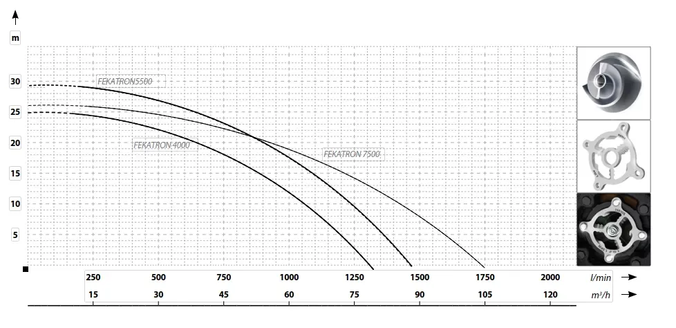 Погружной фекальный насос MAXPUMP FEKATRON 7500 широко используется в отводе сточных вод, канализационных системах и частных строениях. У насоса корпус и крыльчатка изготовлены из чугуна, что говорит о высокой прочности. Крыльчатка насоса MAXPUMP FEKATRON 7500 разработана для достижения большого напора и высокой производительности. В насосе установлен профессиональный измельчитель. Производительность насоса в максимальном значении 105 м³/час, а напор в максимальной точке 26 м. Насос работает на базе трехфазного двигателя мощностью 7500 Вт, 2900 об/мин, 380 В/50 Гц, IP 68.