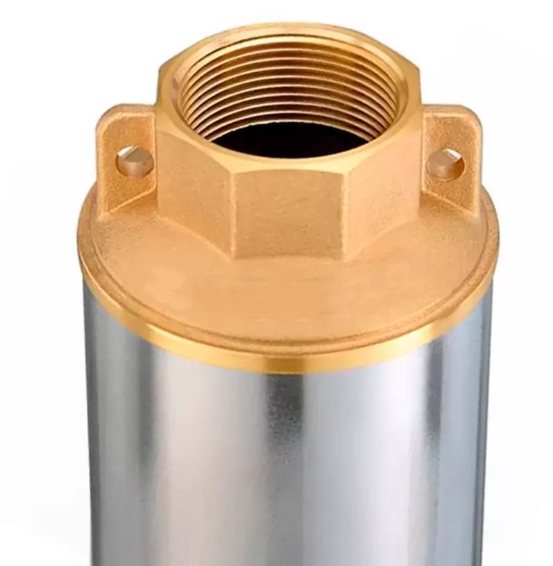 - Патрубок всасывания и нагнетания: Изготовлены из латуни, материала, известного своей коррозионной стойкостью и прочностью, что делает насос идеальным для использования с различными жидкостями.