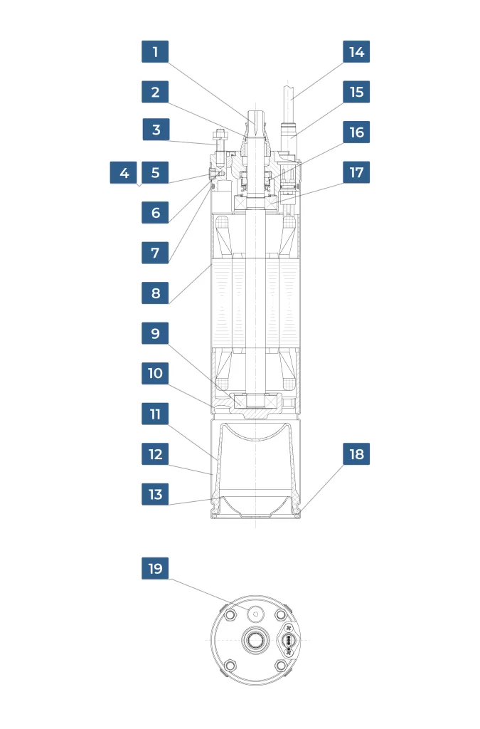 - Корпус двигателя — нержавеющая сталь