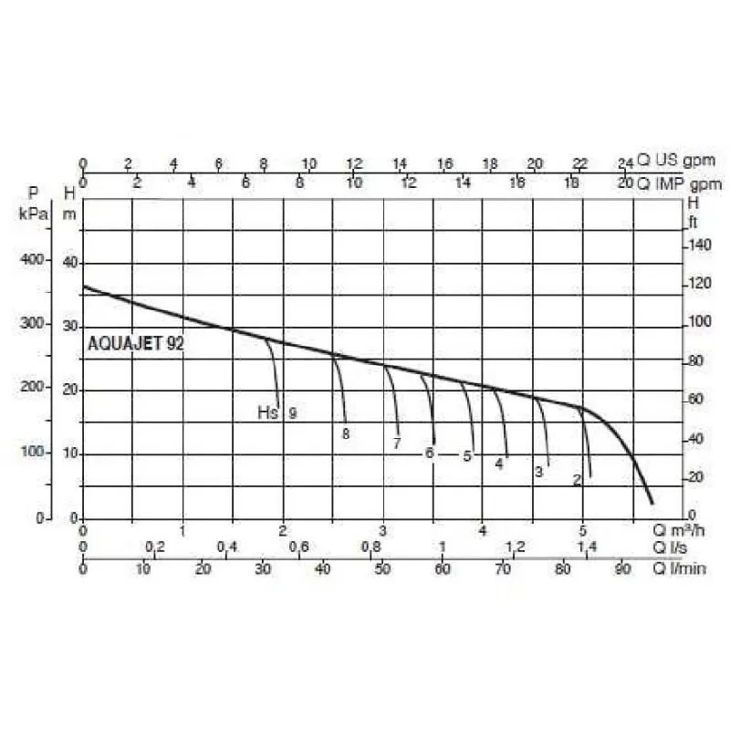 Графические характеристики насосной станции DAB AQUAJET 92 M