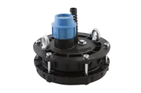 - В крышке впрессован цанговый зажим из латунного сплава для ввода пластмассовой напорной трубы вывода воды;