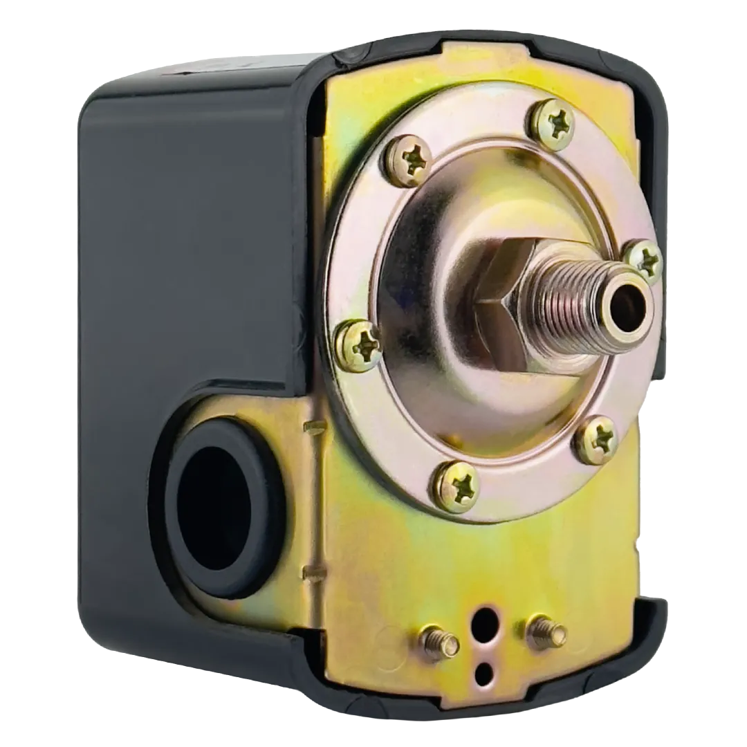Однофазный реле давления MAXPUMP PS-02 с тремя 1-дюймовыми точками подключения, простой установкой, без необходимости установки фитинга непосредственно на выходе насоса, а также возможностью подключения садового штифта и гидрофобного резервуара. Реле давления насоса фиксирует падение водяного давления и в момент достижения порога включения реле включает насос. После этого мембранный бак начинает наполняться водой, давление увеличивается, и, при достижении порога выключения, реле давления отключает насос. Заводские настройки по умолчанию могут быть изменены от 1 до 5 бар, в зависимости от того, включены ли они и выключены от 1 до 0 бар.