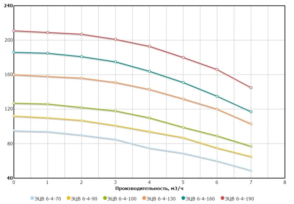 Графические характеристики ЭЦВ 6-4-190н