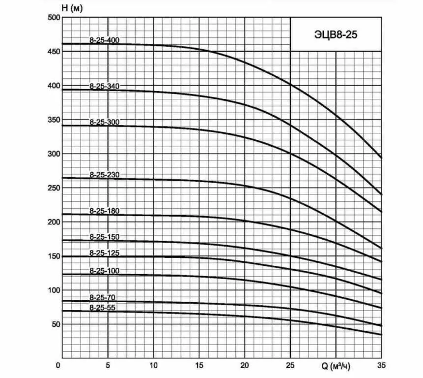 Графические характеристики ЭЦВ 8-25-150н НРК