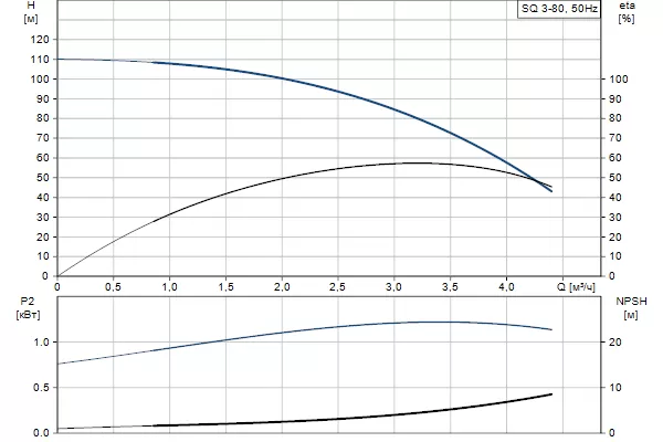 Графические характеристики Grundfos SQ 3-80 кабель 50 метров