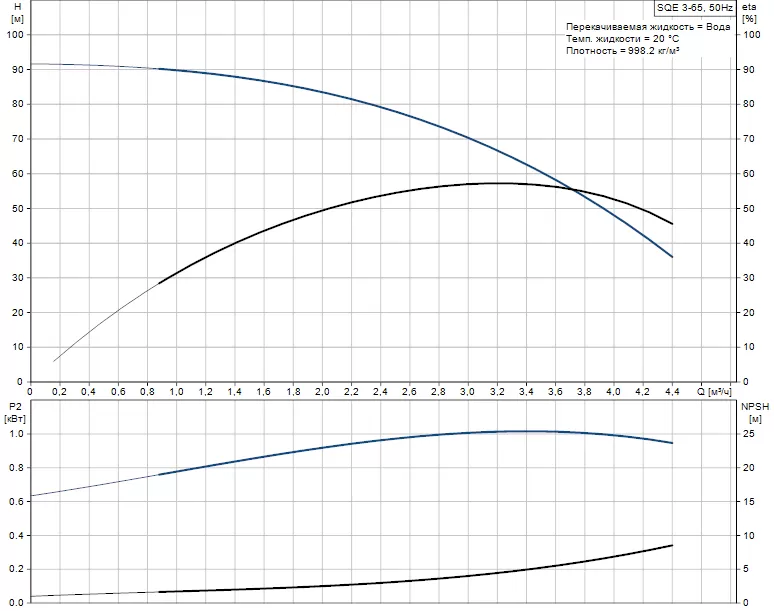 Скважинный насос Grundfos SQE 3 - 65 изготовлены из высококачественной коррозионностойкой стали с применением новейших технологий, что обеспечивает длительный срок службы насосов в различных условиях эксплуатации. Насос имеет отличные показатели в напорно-расходных характеристиках. Максимальный напор у глубинного насоса Grundfos SQE 3 - 65 равен 90 м, а производительность 4.4 м3/час. При таких характеристиках насос является энергосберегающим, мощность электродвигателя составляет 1150 Вт. Глубинный насос Grundfos SQE 3 - 65 подключается к сети 220 в. Насос комплектуется с завода кабелем 1.5 м. Гарантия составляет 5 лет.