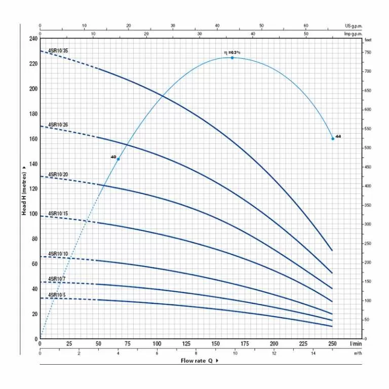 Глубинный насос Pedrollo 4SR10/20-P, отличается объективной ценой и надежной работой всех исполнительных механизмов. Насос Pedrollo 4SR10/20-P достаточно простой в эксплуатации и обслуживании, поэтому отлично подходит как для домашнего, так и промышленного применения.В основе работы Pedrollo 4SR10/20-P лежит конструктивно простой, но функционально успешный многоступенчатый центробежный принцип. Электрический двигатель подключается к агрегату через суппорт, в соответствии с нормативами международного стандарта NEMA. Мощность электродвигателя насоса составляет 4000 Вт . И при таких показателях мощности насос обладает максимальным напором в 130 метров и максимальной производительностью 15 м3/час. Функционирование Pedrollo 4SR10/20-P идентично большинству устройств, основанных на центробежных механизмах подачи воды. Жидкость втягивается в корпус устройства благодаря центробежной силе, создаваемой рабочими колесами, которые также проталкивают воду через все тело насоса "диаметр насоса 4"", а затем в нагнетающий патрубок "диаметр патрубка 2"", через который вода и попадает к конечному потребителю. Главной особенностью насоса Pedrollo 4SR10/20-P является малый диаметр корпуса агрегата, а также то, что перекачиваемая вода не касается стенок двигателя. Между жидкостью и корпусом движущей установки располагается прослойка из технологического масла, которая и предотвращает попадание мелких частиц непосредственно в исполнительный механизм. В то время как охлаждение электропривода происходит за счет верхнего способа забора воды, т.е. перекачиваемая жидкость находится всегда выше уровня расположения двигателя. Насос питается от сети в 380 в и комплектуется кабелем 1.5 метров.