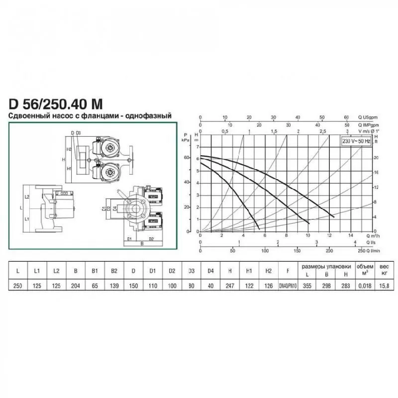 Циркуляционный насос DAB D 56/250.40 M предназначен для эксплуатации в системах отопления, где предъявляются повышенные требования к надежности. Отличительной чертой серии D является наличие второго дублирующего насоса, который автоматически включается в работу при поломке первого насоса. Таким образом в одном корпусе расположены сразу два отдельных насоса которые полностью дублируют друг друга. Присоединение насоса с помощью фланцев.