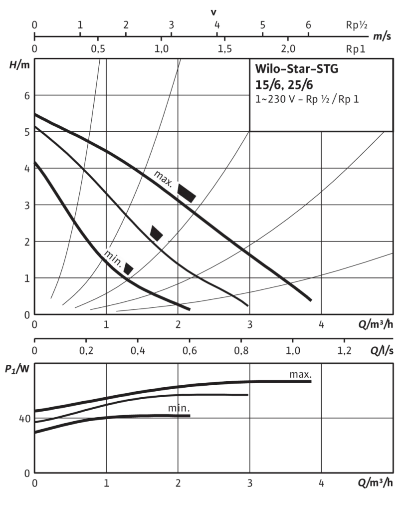 Циркуляционный насос WILO STAR-STG 25/6 с мокрым ротором для установки в трубах с ручной трехступенчатой регулировкой частоты вращения. С устойчивым к токам блокировки электродвигателем. Корпус насоса из серого чугуна (в зависимости от типа может применяться бронза), рабочее колесо из упрочненного стекловолокном синтетического материала, вал из нержавеющей стали с угольными подшипниками скольжения с металлической пропиткой.