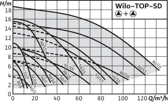 Циркуляционный насос WILO TOP-SD 65/15 DM PN6/10 применяется для любых систем отопления, систем кондиционирования, закрытых контуров охлаждения и промышленных циркуляционных систем. Не требующий обслуживания сдвоенный насос с мокрым ротором с резьбовым или фланцевым подсоединением; возможен выбор ступеней частоты вращения.